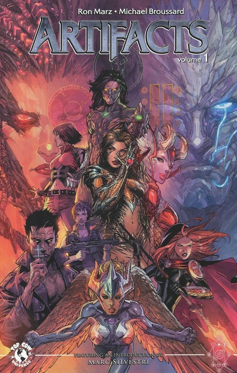 (W) Ron Marz (A) Michael Broussard (CA) Top Cow’s FinestCatch up on the Event of the Year! Discover the series that has everyone buzzing with this introductory priced trade paperback collection released to coincide with the beginning of the second chapter of the yearlong event! Separately, thirteen mystical Artifacts will guide the fate of the Universe. Together, thirteen Artifacts will end the Universe. When a mysterious antagonist kidnaps, Hope, the daughter of Sara Pezzini and Jackie Estacado, Armageddon is put into motion. Starring virtually every character in the Top Cow Universe, this is a series for diehard fans and new readers alike.Written by Top Cow Universe architect Ron Marz (Witchblade, Magdalena) and featuring art by Michael Broussard (The Darkness), this volume collects Artifacts #1-#4 along with the Free Comic Book Day #0 issue and a beautiful cover gallery, behind-the-scenes extras, and much more!